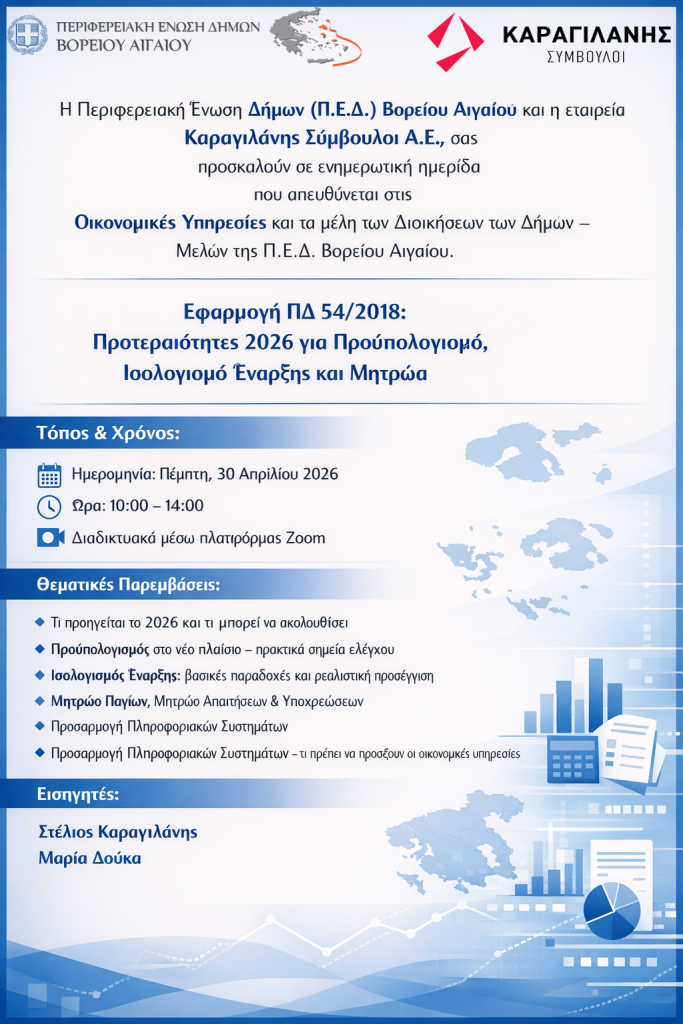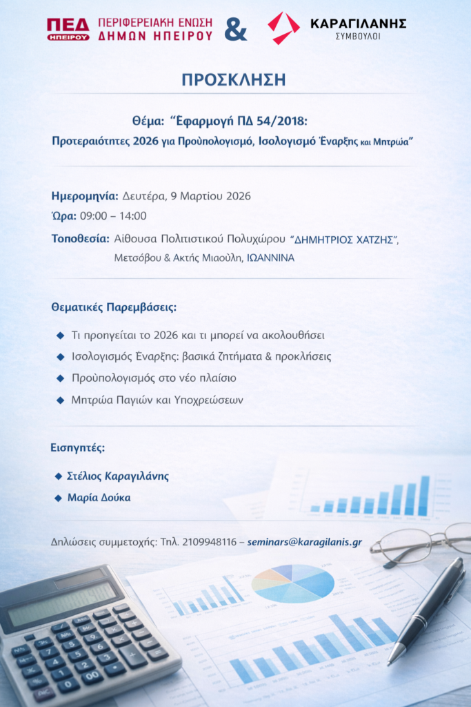 «Εφαρμογή του ΠΔ 54/2018: Προτεραιότητες για το 2026 σε Προϋπολογισμό, Ισολογισμό Έναρξης και Μητρώα»