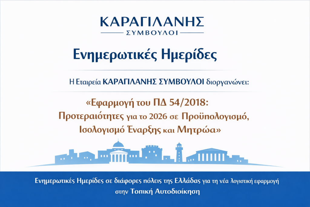 Η Εταιρεία ΚΑΡΑΓΙΛΑΝΗΣ ΣΥΜΒΟΥΛΟΙ διοργανώνει Ενημερωτικές Ημερίδες με θέμα: