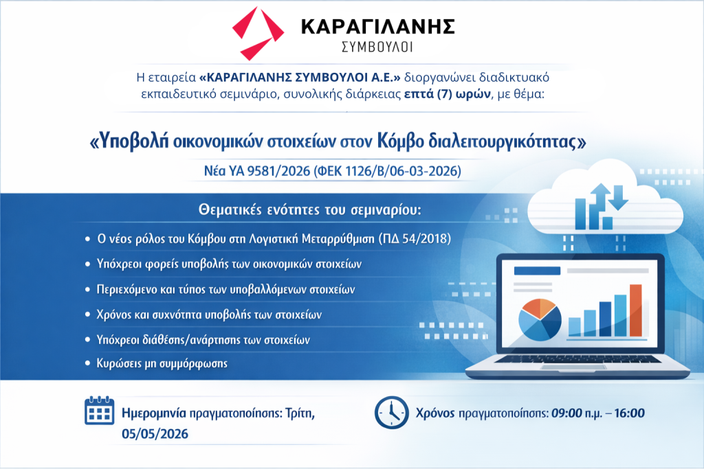 Η εταιρεία «ΚΑΡΑΓΙΛΑΝΗΣ ΣΥΜΒΟΥΛΟΙ Α.Ε.» σας προσκαλεί σε ανοιχτή διαδικτυακή ενημέρωση με θέμα: