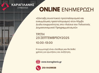 Η εταιρεία «ΚΑΡΑΓΙΛΑΝΗΣ ΣΥΜΒΟΥΛΟΙ Α.Ε.» θα πραγματοποιήσει ανοιχτή OnLine ενημέρωση με θέμα: