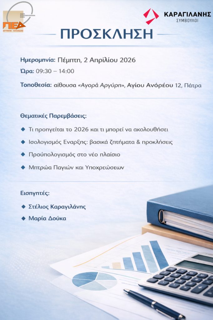 Η Εταιρεία ΚΑΡΑΓΙΛΑΝΗΣ ΣΥΜΒΟΥΛΟΙ διοργανώνει Ενημερωτικές Ημερίδες με θέμα: